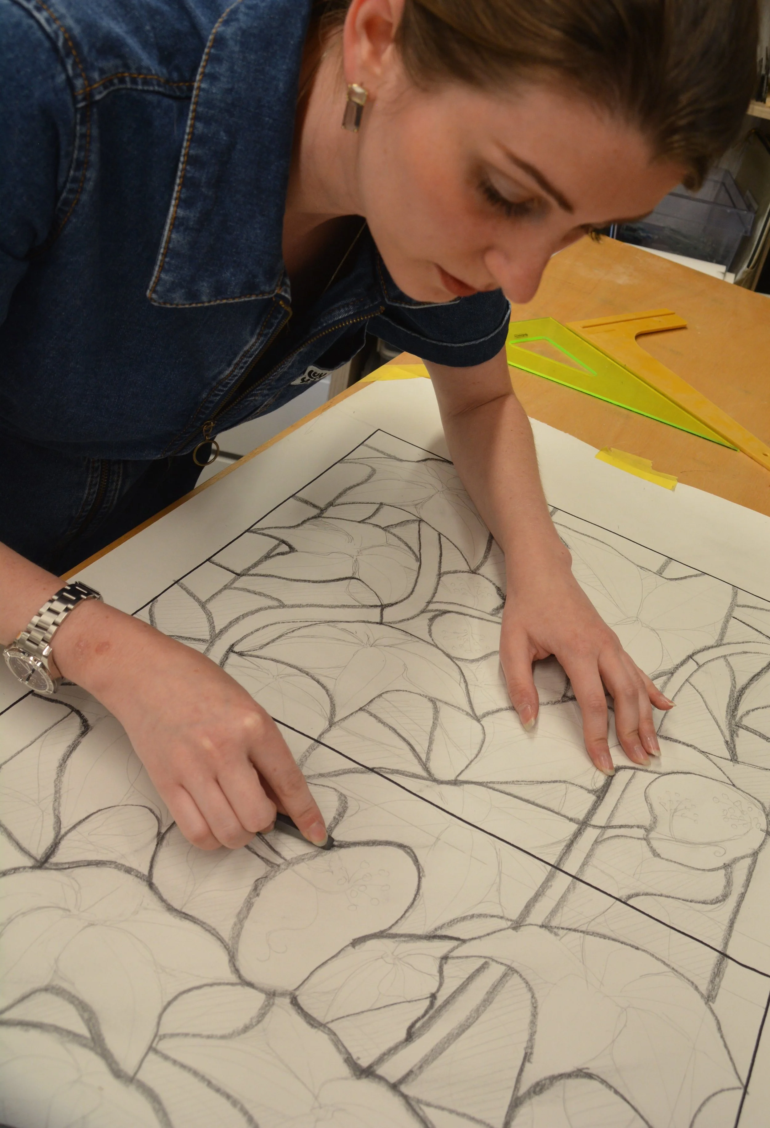 Isabelle has worked at Canterbury Cathedral Studios and had placements at the York Glaziers Trust and Reyntiens Glass Studio in London - the latter part of the Ashton Hill Award from the Worshipful Company of Glaziers. These experiences have enriched her technical skills and deepened her understanding of stained glass traditions and techniques.